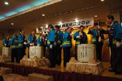 写真:鏡割りを行う出席者 拝 映輔